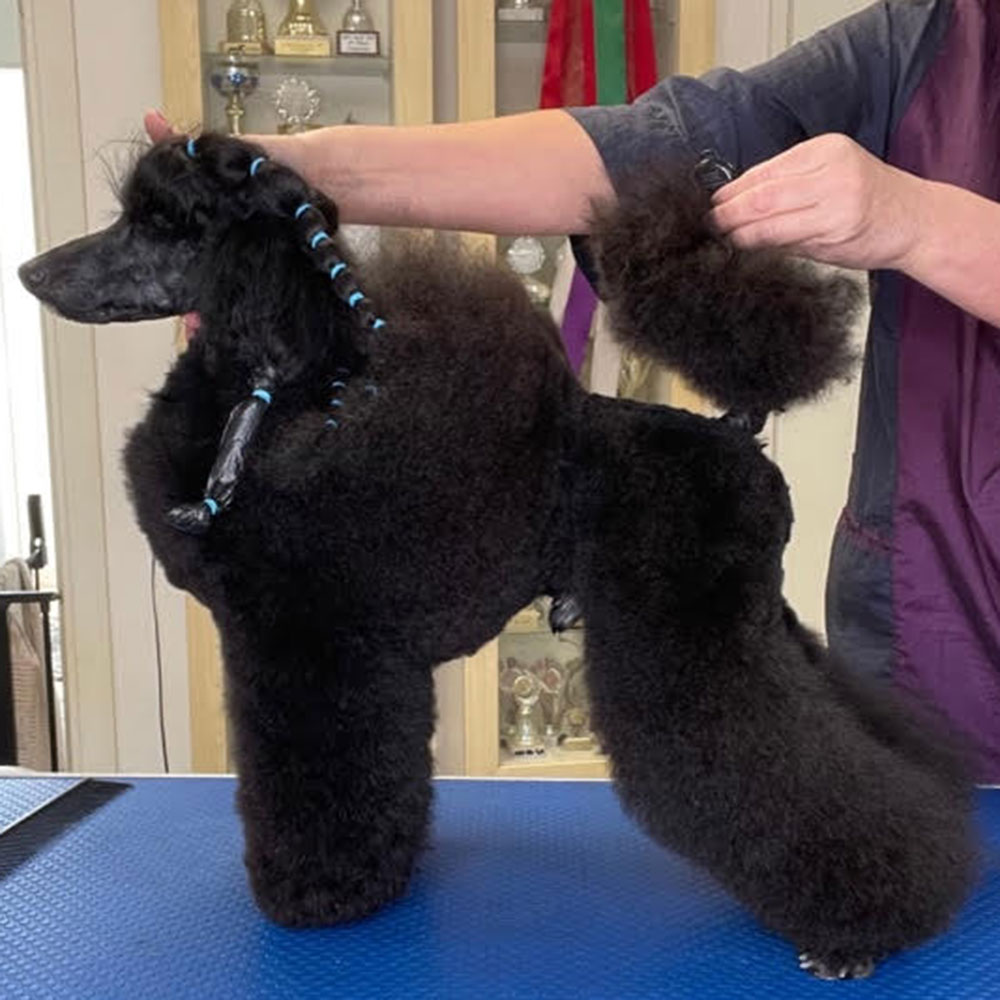 Min interesse for klipning, soignering og pelspleje stammer fra min omfattende erfaring med udstilling af hunde. Jeg har DKK stambogsført opdræt af sorte dværgpudler og er meget aktiv på både danske og udenlandske udstillinger, hvilket stiller store krav til perfekt grooming.